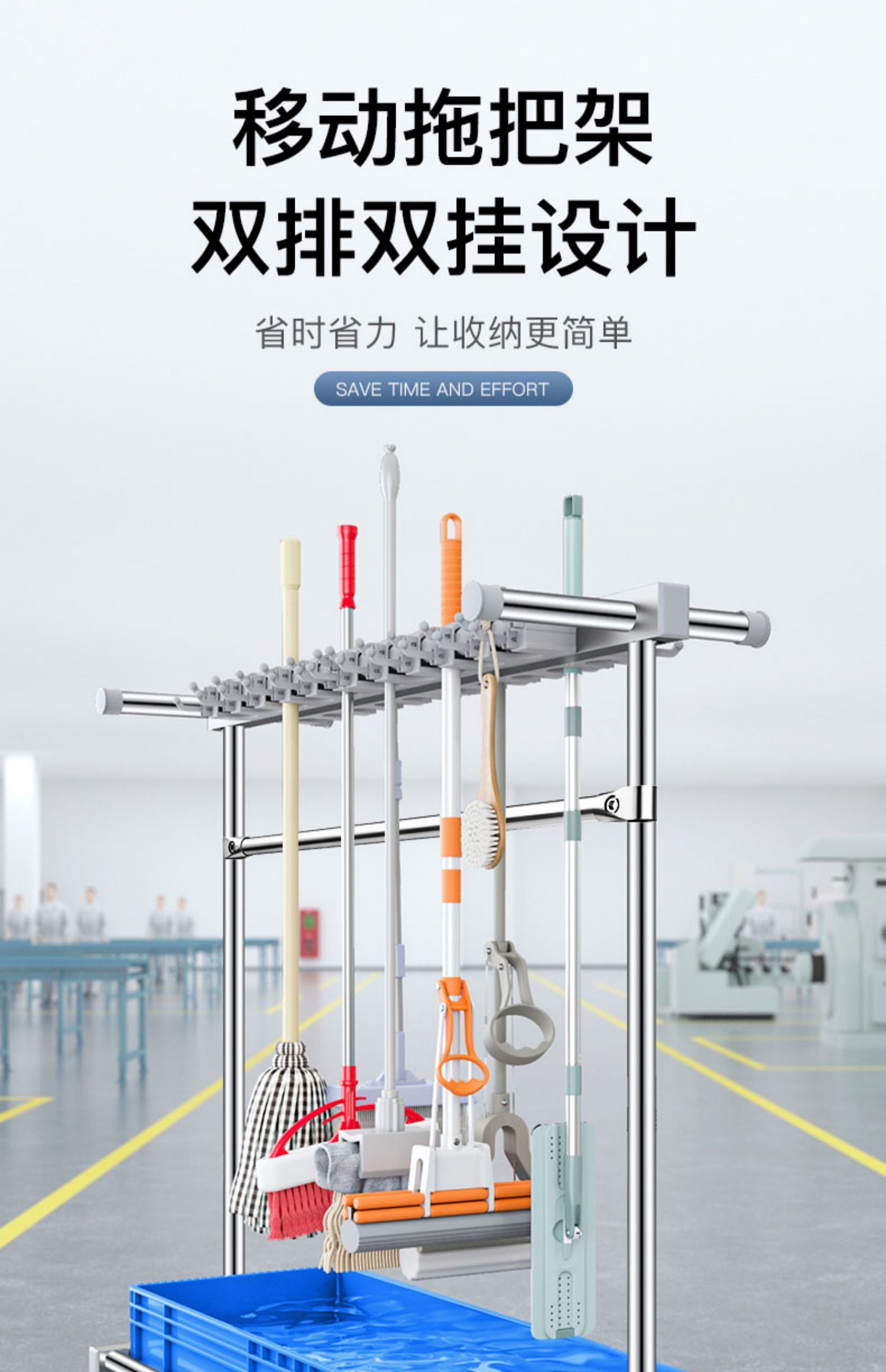 移动落地式拖把架商用不锈钢置物架墩布扫把架清洁工具收纳扫帚夹